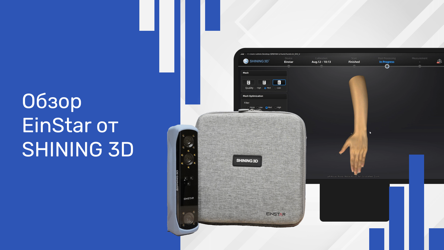 В ассортимент продукции входят настольные 3D-сканеры, интраоральные сканеры, метрологические сканеры и стоматологические 3D-принтеры. Недавно компания выпустила 3D-сканер Einstar, который привлекает внимание своей доступной ценой, став первым устройством SHINING 3D стоимостью менее 1000 евро. Этот сканер, благодаря накопленному опыту компании, позиционируется как профессиональная модель начального уровня. Чем же он отличается от аналогичных устройств? Насколько стабильно он работает за такую цену? Давайте разберёмся!