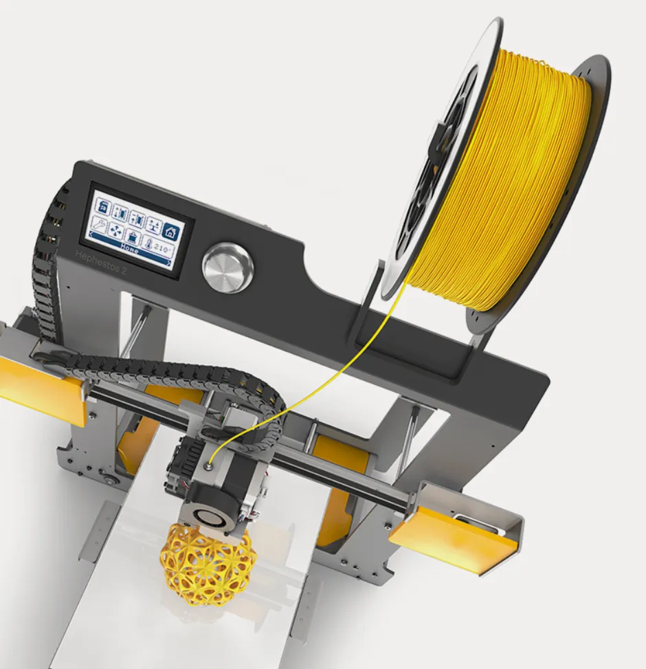 Нашей целью было - сделать возможным сборку готового к печати Hephestos 2 за время меньшее, чем 2 часа. Все элементы принтера проектировались нами, удерживая эту цель в голове. Мы уменьшали количество дополнительных компонентов, много работали с упаковкой, чтобы сделать её удобной и легко различимой в ходе последовательного процесса сборки. Нашим детищем стал принтер с элегантными линиями корпуса, быстро и эффективно собирающийся.