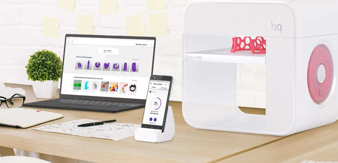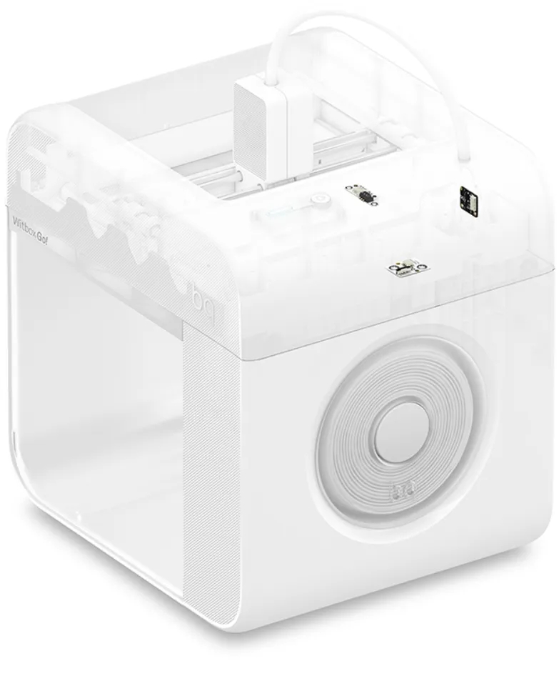 Witbox Go! органично вписывается в интерьер любого дома или офиса. За минималистическую эстетику, простые линии и белый цвет он был награжден престижной премией Red Dot как Лучший дизайн продукции. Помимо своей внешней лаконичности он вместе со всеми своими компонентами достаточно легкий (всего 5 килограмм) и компактный.
