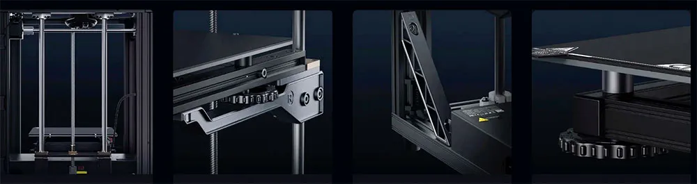2. Цельнометаллическая рама с повышенной стабильностью за счет расширенных линейных валов, двух консолей и силиконовых креплений.