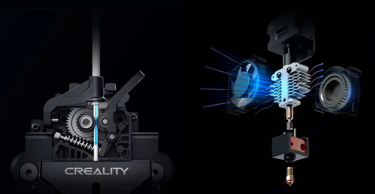 3. Цельнометаллический прямой экструдер «Sprite» с двумя ведущими шестернями с передаточным числом 1:3,5 обеспечивает уверенную плавную экструзию, идеально подходит для печати гибких нитей как TPU или прочными нитями на высоких температурах.