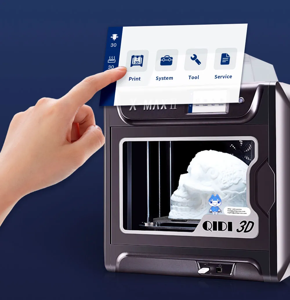 QIDI X-Max II - широкоформатный 3D принтер для профессионального использования с нагревом экструдера до 300 °C, позволяющий печать широким спектром пластиком, в том числе спецпластиками, такими как Carbon, Nylon, PC и пр.