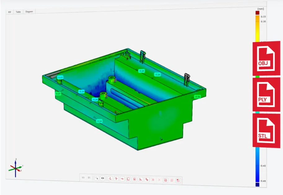 ScanCenter NG позволяет экспортировать 3D-модели в самые популярные форматы: STL, OBJ, PLY. Функция импорта CAD-файлов в универсальном формате STEP с автоматической триангуляцией сетки обеспечивает связь ScanCenter NG с системами 3D-моделирования.