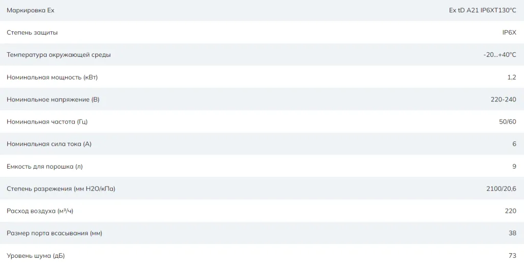 Взрывозащищенный вакуумный пылесос TOP TEX3-E1.2KW IB 9L