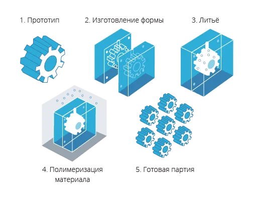Мелкосерийное производство путем литья в силиконовые формы имеет определенные особенности и состоит из нескольких этапов: